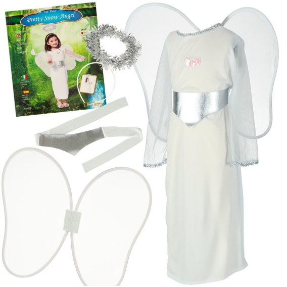z aureolą na głowę i anielskie skrzydła. Strój jest wykonany z