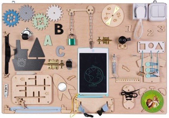 Ale czym dokładnie jest tablica manipulacyjna? To produkt, który posiada wiele różnorodnych elementów, najczęściej takich codziennego użytku - między innymi: gniazdko z wtyczką, włącznik światła, dzwonek rowerowy i wiele innych!