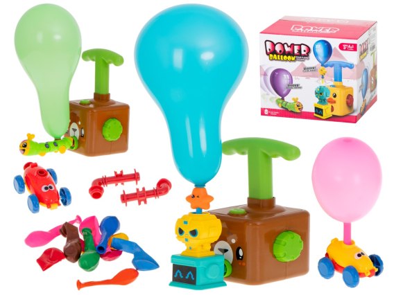 Ten fantastyczny zestaw samochodów napędzanych powietrzem za pomocą balonów to doskonała zabawka dla małych odkrywców. Zabawa polega na założeniu nienadmuchanego balonika na samochód, podłączeniu samochodu do wyrzutni, napompowaniu balonika powietrzem, a następnie wciśnięciu guzika na wyrzutni, aby obserwować, z jaką prędkością samochód przemierza dywan w pokoju.